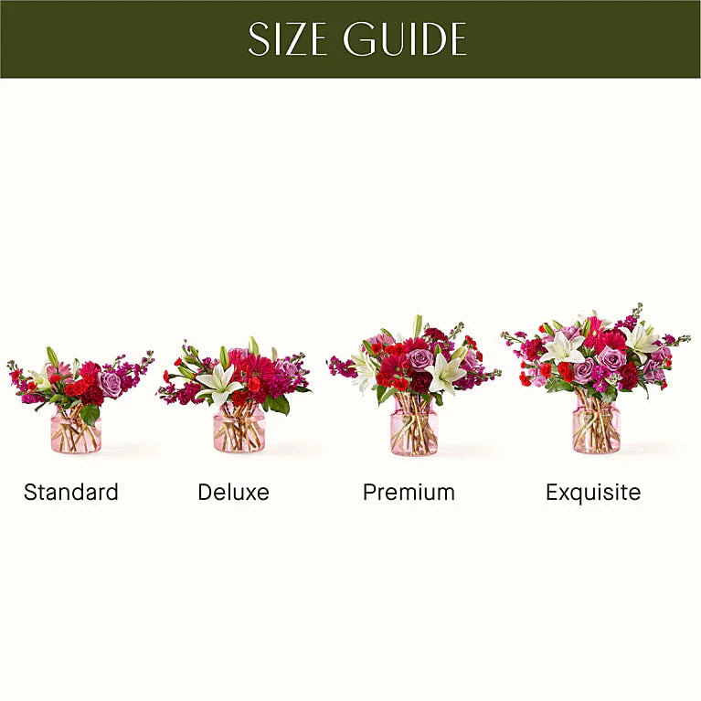 - The Standard Bouquet is approximately 14"H x 16"W.